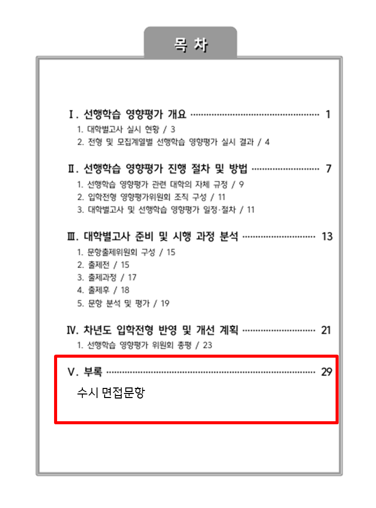 2024학년도 선행학습 영향평가 결과보고서를 게재하오니 2025학년도 수시 면접 준비에 참고하여주시기 바랍니다.