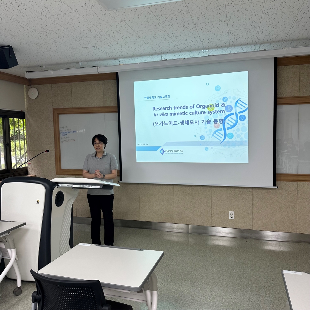 이번 기술교류회는 한국생명공학연구원 정초록 박사를 연사로 모시고 '한국생명공학연구원의 오가노이드 연구동향'를 주제로 강연이 진행되었다.