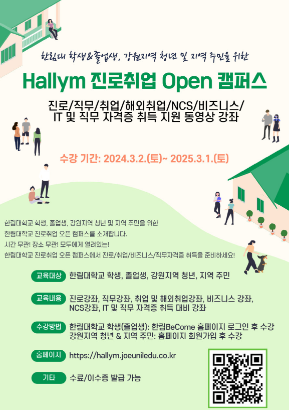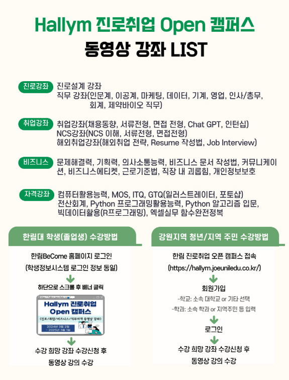 한림 진로취업 Open 캠퍼스(진로/취업/NCS/해외취업/자격증 대비 동영상 강좌) 수강 안내