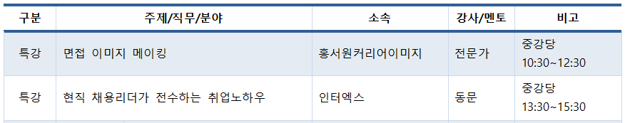 [특강] 오전/오후 각 1회 중강당에서 진행