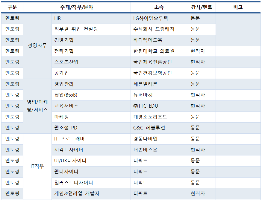 [멘토링] 부스별로 자유롭게 참여(사전 신청없음)